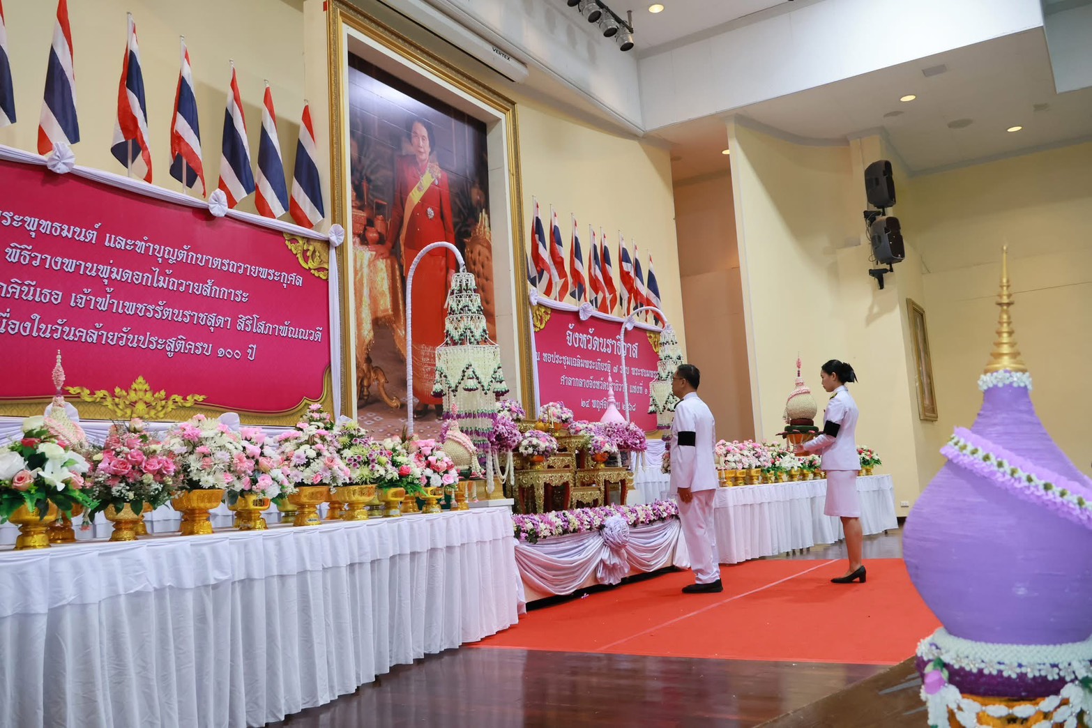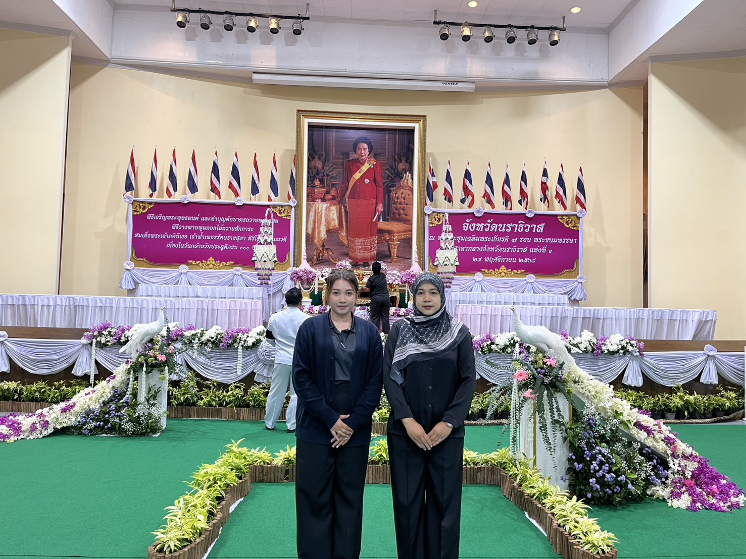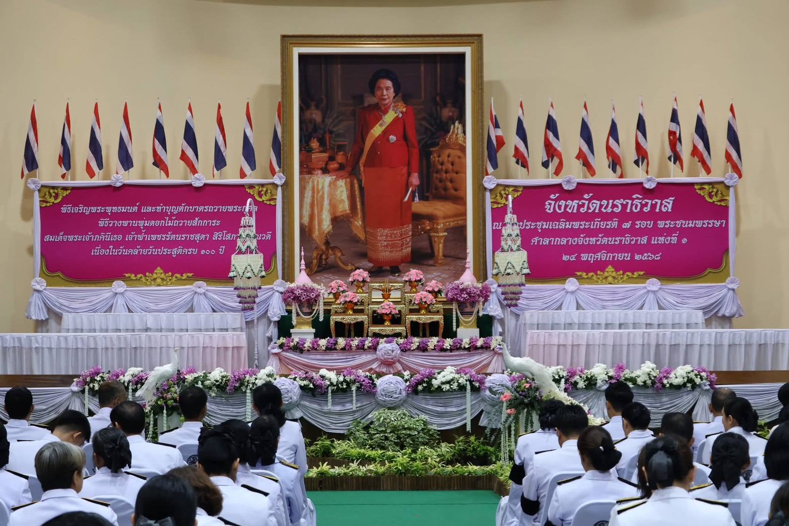 วันที่ 24 พฤศจิกายน 2568 เวลา 08.00 น. นายเลอศักดิ์ กุลเสถียร อุตสาหกรรมจังหวัดนราธิวาส มอบหมายนางอรทัย ปิ่นทอง นักวิเคราะห์นโยบายและแผน และนางสาวรุสณี กะแลแปะ เจ้าหน้าที่บันทึกข้อมูล ร่วมพิธีวางพานพุ่มดอกไม้ถวายสักการะสมเด็จพระเจ้าภคินีเธอ เจ้าฟ้าเพชรรัตนราชสุดา สิริโสภาพัณณวดี ณ หอประชุมเฉลิมพระเกียรติ 7 รอบ พระชนมพรรษา ศาลากลางจังหวัดนราธิวาส แห่งที่ 1 อำเภอเมืองนราธิวาส จังหวัดนราธิวาส โดยมีนายวีรพัฒน์ บุณฑริก รองผู้ว่าราชการจังหวัดนราธิวาส รักษาราชการแทน ผู้ว่าราชการจังหวัดนราธิวาส เป็นประธานในพิธี