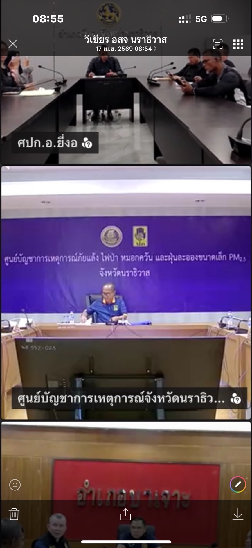 วันที่ 17 เมษายน 2569 เวลา 08.00 น. นายวิเชียร ทองด้วง อุตสาหกรรมจังหวัดนราธิวาส เข้าร่วมประชุมติดตามสถานการณ์ป้องกันเหตุการณ์ภัยแล้ง ไฟป่า หมอกควัน และฝุ่นละอองขนาดเล็ก (PM2.5) ในพื้นที่จังหวัดนราธิวาส ผ่านระบบออนไลน์ Microsoft Teams ร่วมกับส่วนราชการที่เกี่ยวข้อง โดยมีสำนักงานป้องกันและบรรเทาสาธารณภัยจังหวัดนราธิวาส เป็นประธานการประชุม ทั้งนี้กองอำนวยการป้องกันและบรรเทาสาธารณภัยจังหวัดนราธิวาส ได้แต่งตั้งอุตสาหกรรมจังหวัดนราธิวาส เป็นคณะทำงานแผนกติดตามสถานการณ์ มีหน้าที่เฝ้าระวังและติดตามสภาพอากาศ บริหารจัดการน้ำ คำเตือนต่าง ๆ และประเมินภัยแล้ง ไฟป่า หมอกควัน และฝุ่นละอองขนาดเล็ก (PM2.5) และรายงานสถานการณ์ไปยังศูนย์บัญชาการเหตุการณ์แต่ละระดับ รวมถึงแจ้งเตือนหากคาดว่าจะเกิดภัย และรวบรวมข่าวสาร ติดตามสถานการณ์อย่างต่อเนื่อง