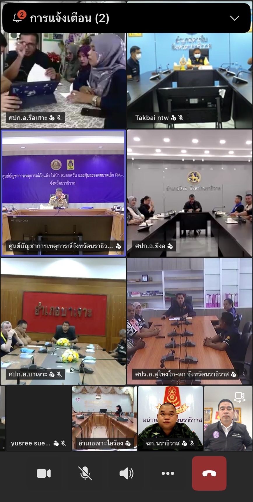 วันที่ 21 เมษายน 2569 เวลา 08.00 น. นายวิเชียร ทองด้วง อุตสาหกรรมจังหวัดนราธิวาส เข้าร่วมประชุมติดตามสถานการณ์ป้องกันเหตุการณ์ภัยแล้ง ไฟป่า หมอกควัน และฝุ่นละอองขนาดเล็ก (PM2.5) ในพื้นที่จังหวัดนราธิวาส ผ่านระบบออนไลน์ Microsoft Teams ร่วมกับส่วนราชการที่เกี่ยวข้อง โดยมีนายบุญช่วย หอมยามเย็น ผู้ว่าราชการจังหวัดนราธิวาส เป็นประธานการประชุม ทั้งนี้กองอำนวยการป้องกันและบรรเทาสาธารณภัยจังหวัดนราธิวาส ได้แต่งตั้งอุตสาหกรรมจังหวัดนราธิวาส เป็นคณะทำงานแผนกติดตามสถานการณ์ มีหน้าที่เฝ้าระวังและติดตามสภาพอากาศ บริหารจัดการน้ำ คำเตือนต่าง ๆ และประเมินภัยแล้ง ไฟป่า หมอกควัน และฝุ่นละอองขนาดเล็ก (PM2.5)และรายงานสถานการณ์ไปยังศูนย์บัญชาการเหตุการณ์แต่ละระดับ รวมถึงแจ้งเตือนหากคาดว่าจะเกิดภัยและรวบรวมข่าวสาร ติดตามสถานการณ์อย่างต่อเนื่อง